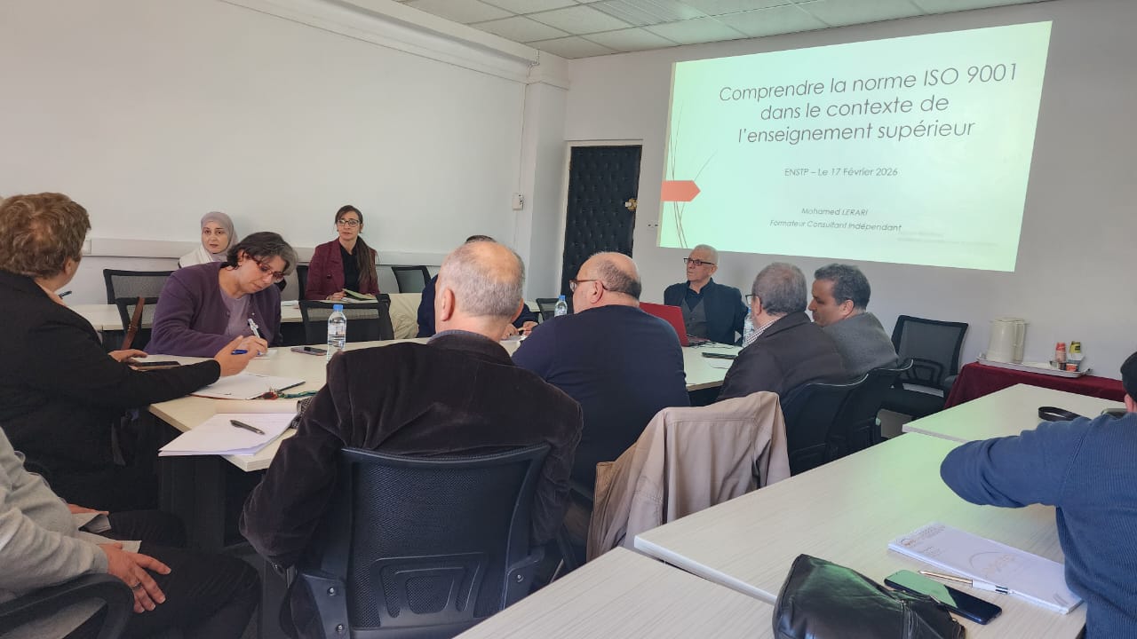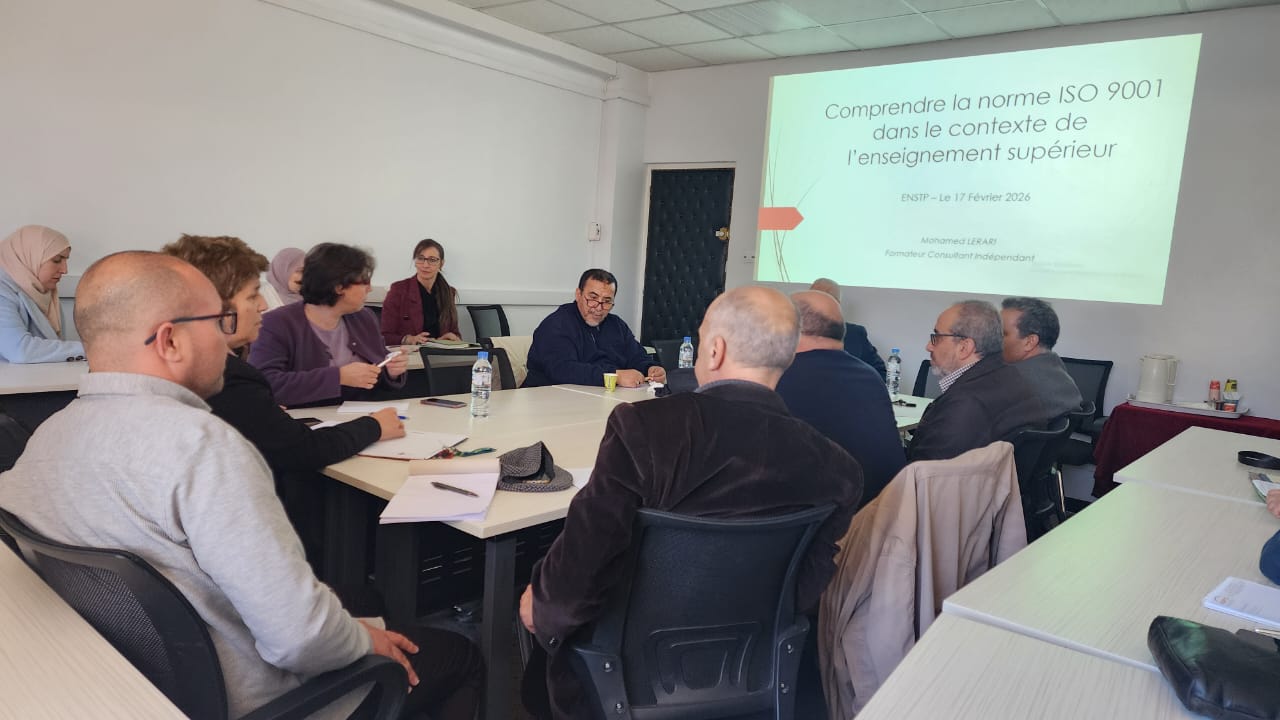 As part of the guidelines issued by the Ministry of Higher Education and Scientific Research regarding the launch of the initiative and the preparation for leading the Quality Management System (QMS), in accordance with the requirements of the ISO 9001:2015 standard at the National Higher School of Public Works (ENSTP), a discussion meeting was held on Tuesday, February 17, 2026 at the school.