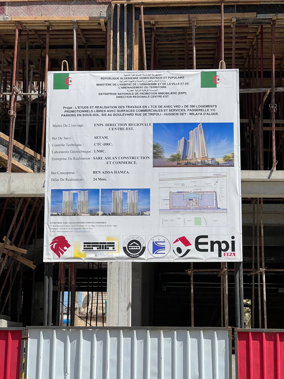 What distinguishes this project—marking a first in Algeria—is the connection between the two towers by a 34-meter-long metallic structural walkway at the 30th floor, at a height of 105 meters.