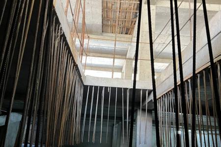 The project consists of two 30-story towers, four underground levels, a shopping center, and a service floor.