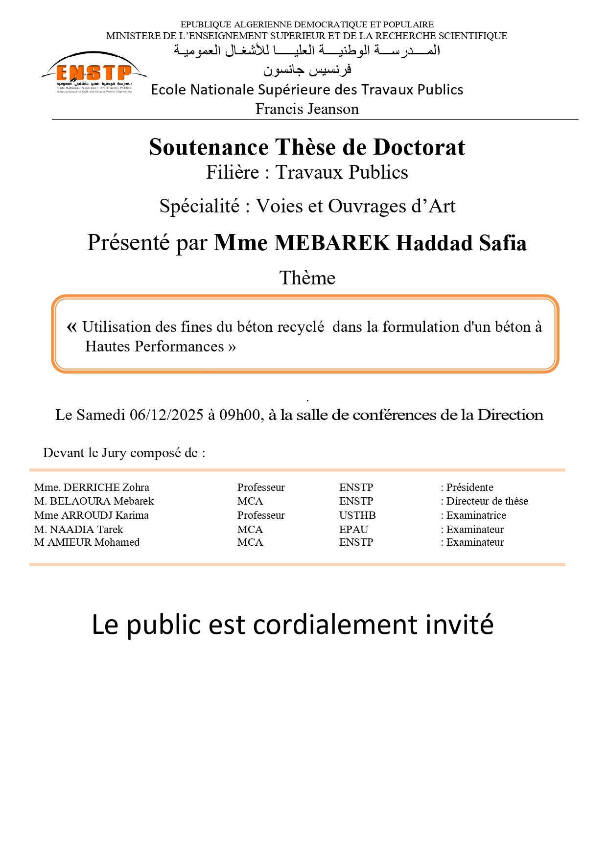 Soutenance Thèse de Doctorat Présenté par Mme MEBAREK Haddad Safia